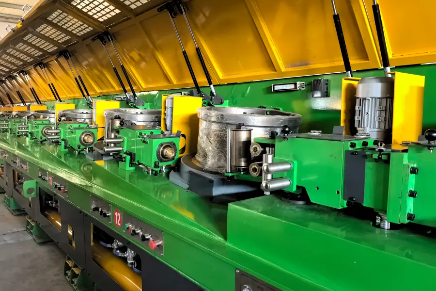 Each pass uses die boxes equipped with diamond or PCD dies to gradually reduce the wire diameter. The machine is supported by a cooling and lubrication system to protect the wire and dies during high-speed operation, as well as a transmission system and tension control system to maintain synchronized speeds and stable drawing forces. The finished wire is collected by the take-up unit, which may be a spooler, coiler, or double-spool system.